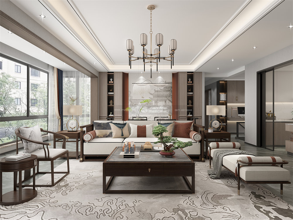 映象美廬159㎡新中式風(fēng)格 客廳效果圖