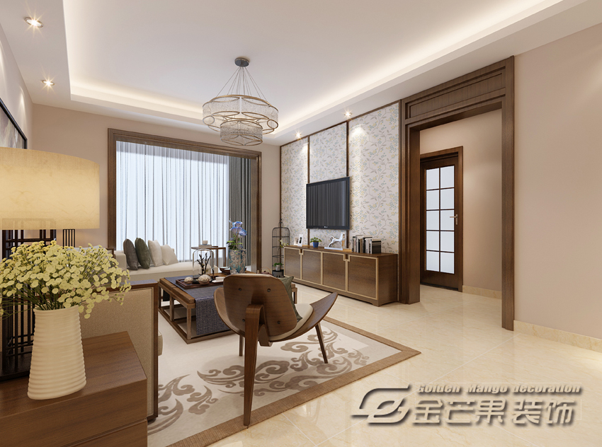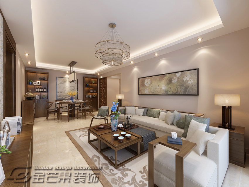 人民壹號廣場120㎡ 簡中風(fēng)格 客廳效果圖 金芒果裝飾設(shè)計師:李應(yīng)剛 出品