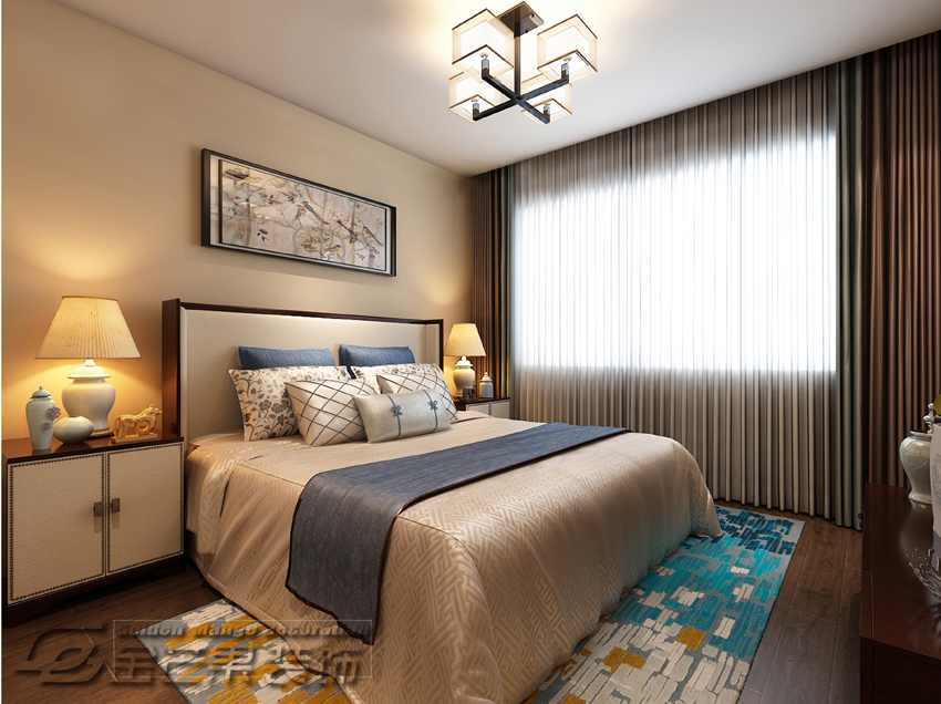人民壹號廣場120㎡ 簡中風(fēng)格 臥室效果圖 金芒果裝飾設(shè)計師:李應(yīng)剛 出品
