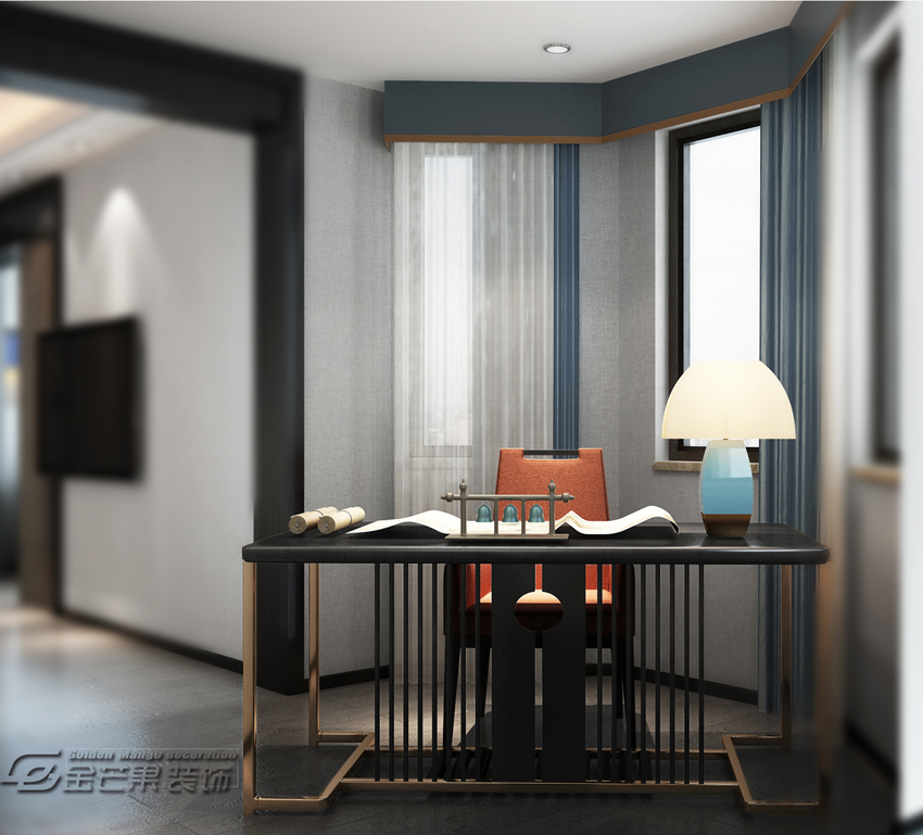 昆明湖瀾庭230㎡ 新中式風(fēng)格 書(shū)房效果圖 金芒果裝飾設(shè)計(jì)師:李葉飛 出品