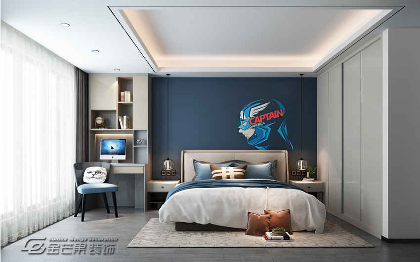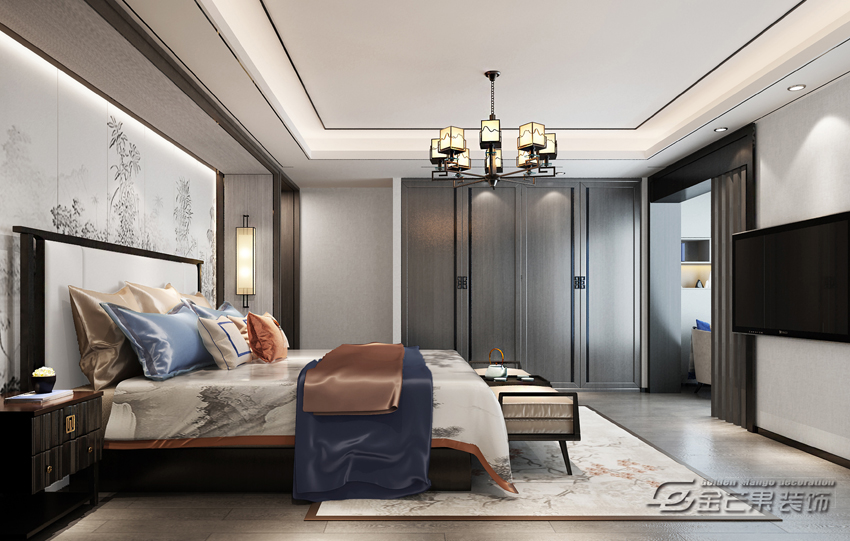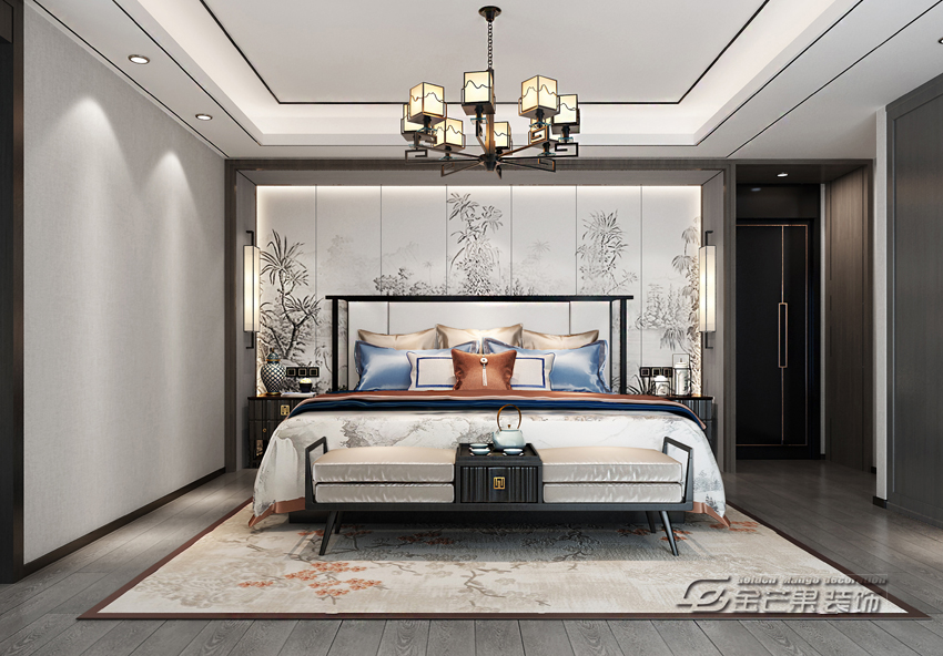 昆明湖瀾庭230㎡ 新中式風(fēng)格 臥室效果圖 金芒果裝飾設(shè)計(jì)師:李葉飛 出品