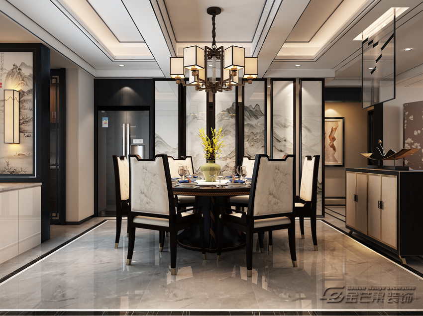 昆明湖瀾庭230㎡ 新中式風(fēng)格 餐廳效果圖 金芒果裝飾設(shè)計(jì)師:李葉飛 出品