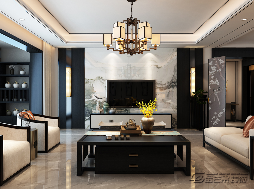 昆明湖瀾庭230㎡ 新中式風(fēng)格 客廳效果圖 金芒果裝飾設(shè)計(jì)師:李葉飛 出品