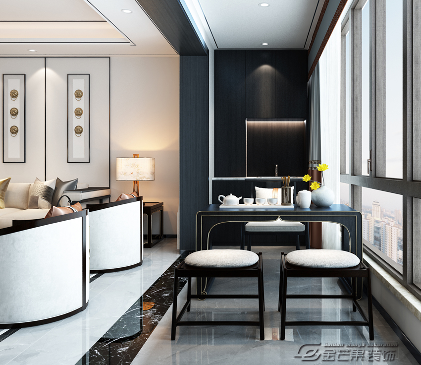 昆明湖瀾庭230㎡ 新中式風(fēng)格 陽(yáng)臺(tái)效果圖 金芒果裝飾設(shè)計(jì)師:李葉飛 出品