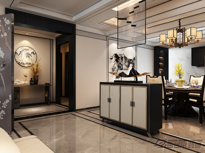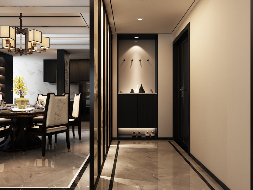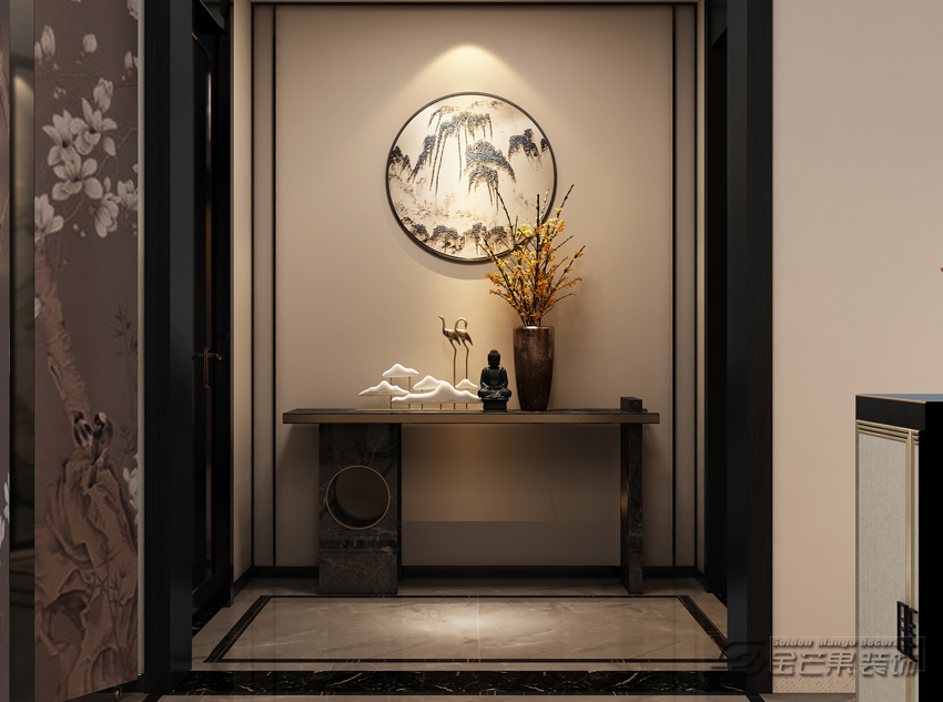 昆明湖瀾庭230㎡ 新中式風(fēng)格 玄關(guān)效果圖 金芒果裝飾設(shè)計(jì)師:李葉飛 出品