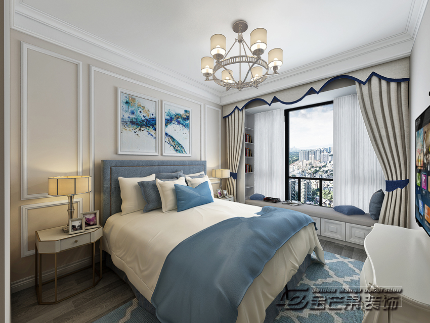 海倫國(guó)際123㎡ 簡(jiǎn)歐風(fēng)格 臥室效果圖 金芒果裝飾設(shè)計(jì)師:浦里哲 出品