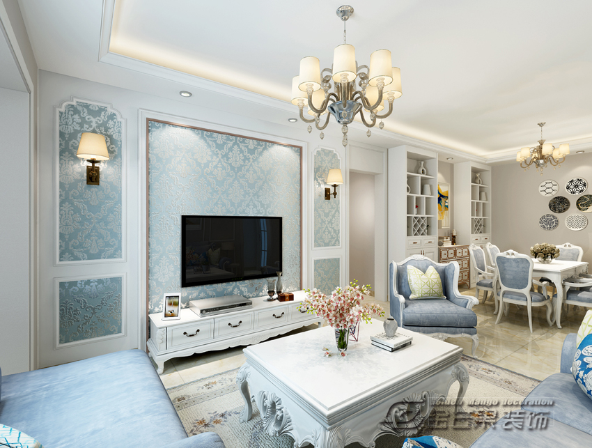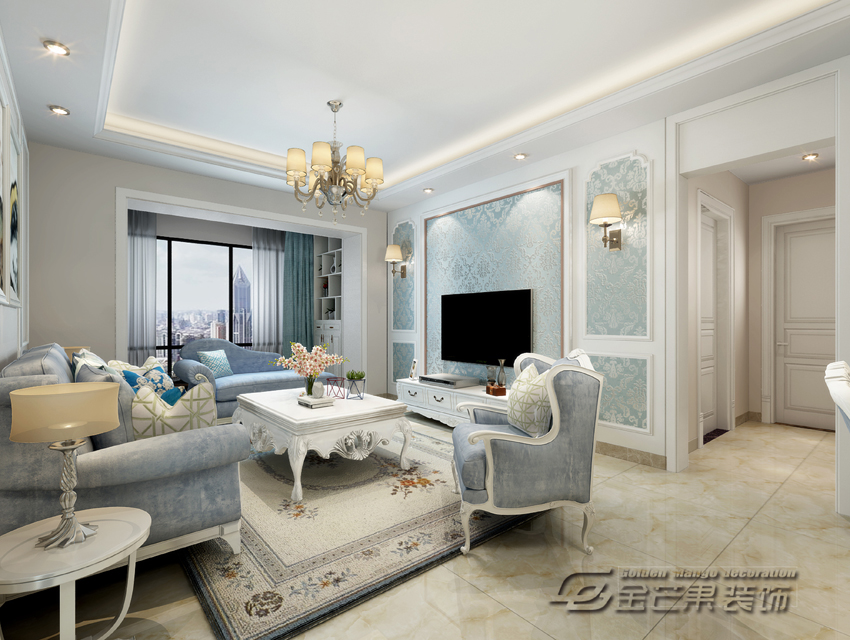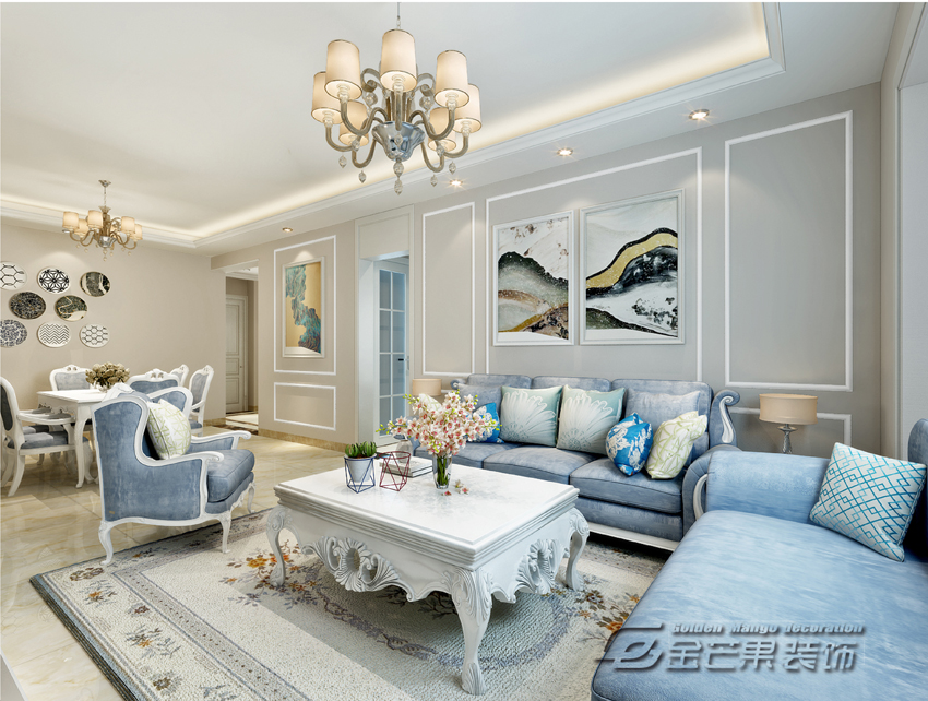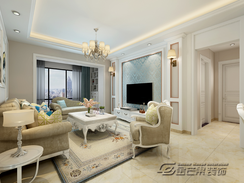 海倫國(guó)際123㎡ 簡(jiǎn)歐風(fēng)格 客廳效果圖 金芒果裝飾設(shè)計(jì)師:浦里哲 出品
