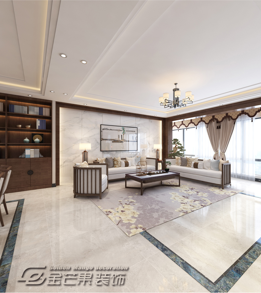 翠湖水晶公寓150㎡ 新中式風(fēng)格 客廳效果圖 金芒果裝飾設(shè)計師:徐祎珅 出品