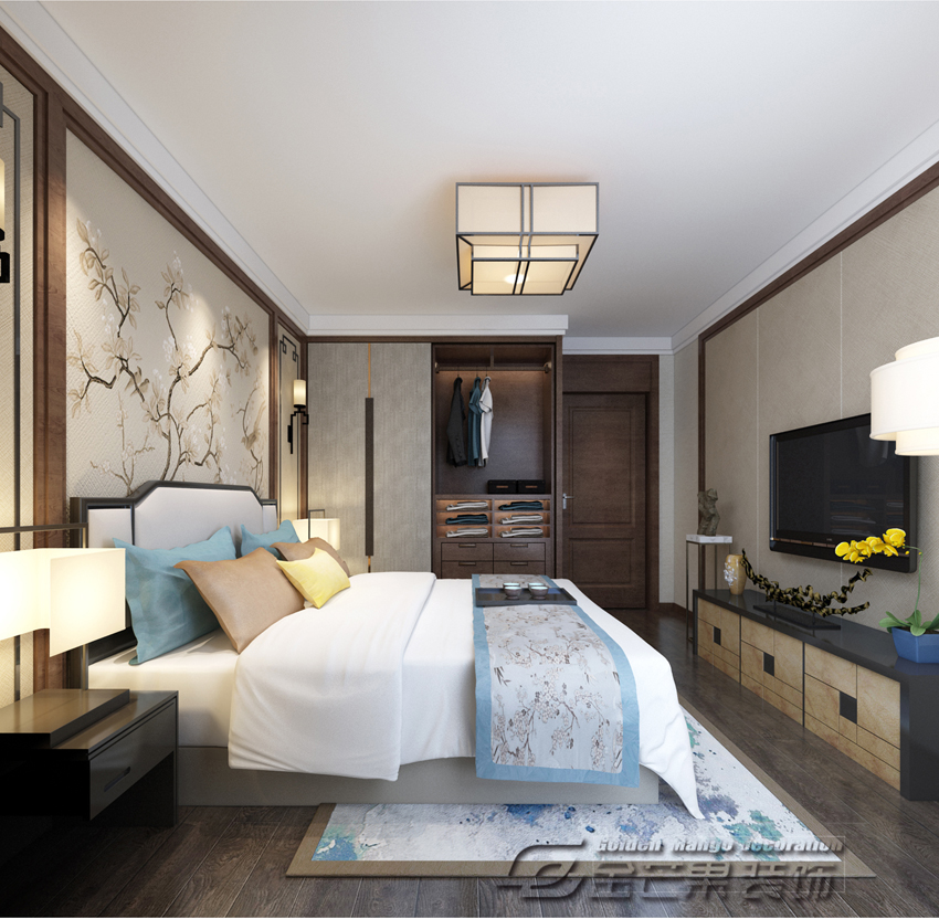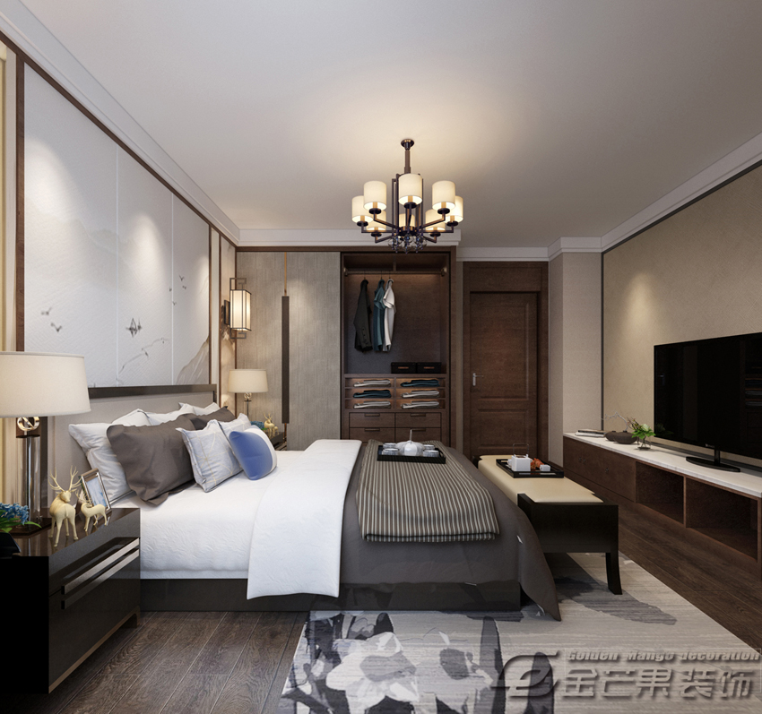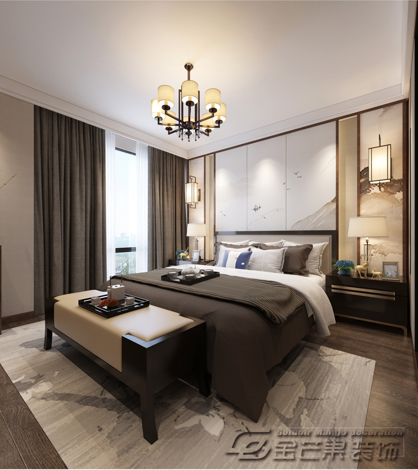 翠湖水晶公寓150㎡ 新中式風(fēng)格 臥室效果圖 金芒果裝飾設(shè)計師:徐祎珅 出品