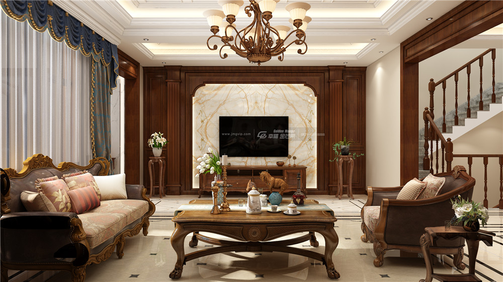 云璽大宅 550㎡ 美式風(fēng)格 玄關(guān)客廳效果圖 幸福金芒果裝飾: 張正川 出品