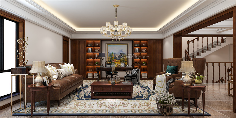 云璽大宅 550㎡ 美式風(fēng)格 書房效果圖 幸福金芒果裝飾: 張正川 出品