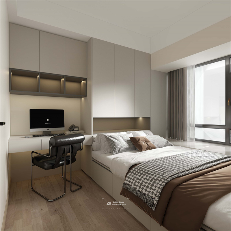 書房的布置簡約又不失雅致,柔和的燈光灑落書桌,營造寧靜的工作氛圍,讓你重拾積極向上的工作態(tài)度。
