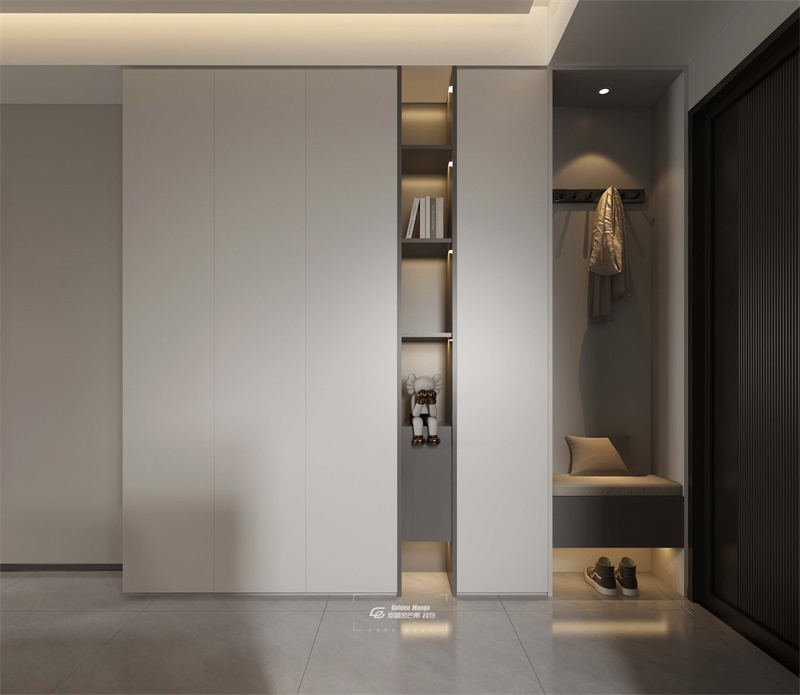 簡約風格的入戶玄關,顏值氣質(zhì)滿滿的同時也不失實用主義。以簡約的棕灰色為基調(diào),搭配溫暖的燈光,一回家就能感受到滿滿的溫暖。一整面的玄關柜收納鞋帽,另外留出展示區(qū)擺放喜歡的飾品增加情調(diào)。留出掛衣區(qū)和換鞋區(qū)讓進出門更加便利,細節(jié)的打造讓家更舒適。