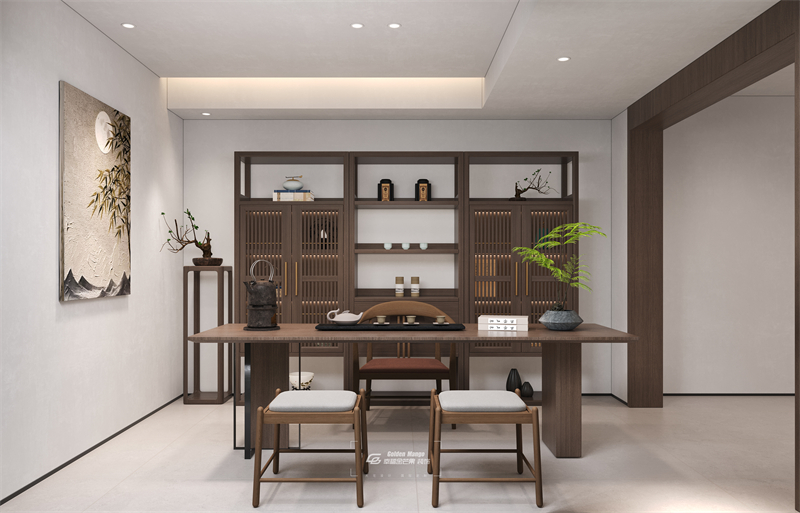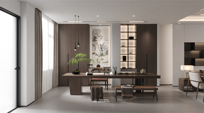 通透的玻璃門將窗外的景致裁剪成詩(shī)意的畫卷,讓自然的光影成為茶室中最靈動(dòng)的裝飾。