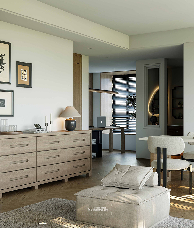 書房,是這片天地里的靜謐角落。木質的書桌與書架,沉穩而內斂,它們以古樸的姿態,承載著知識的重量。書架上擺滿了各類書籍,它們是思想的火種,在這里靜靜燃燒,等待著被點燃。當陽光透過百葉窗,灑在桌面上的筆記本上,時間仿佛在此刻凝固。