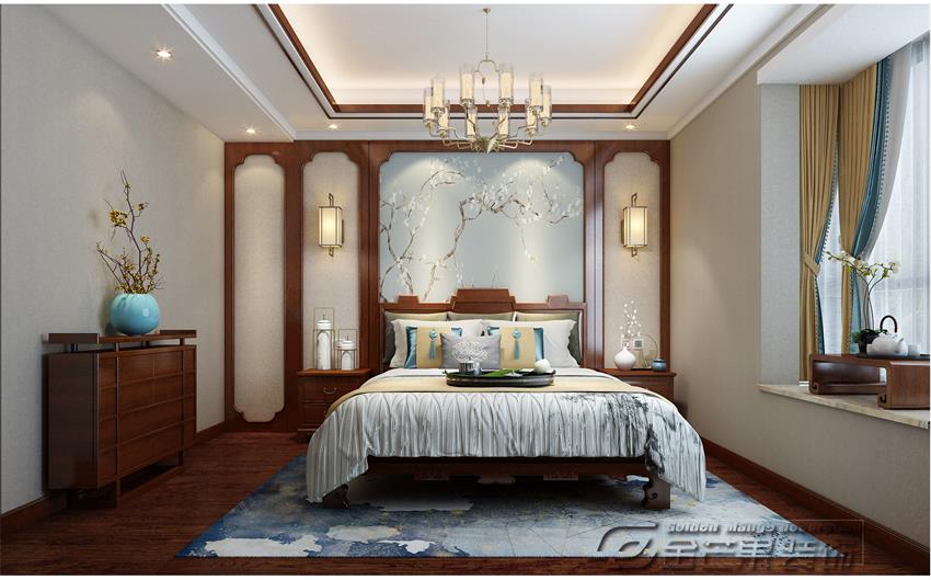 累了就應該回到自己的臥室躺著,對稱的飾品擺放,淡雅的窗簾布,再加上自己喜歡的一幅字畫和一株植物,此刻的臥室,只差你。
