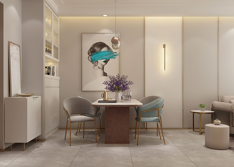 餐桌放在客廳的角落,暢享美食也兼顧藝術(shù)上的享受。