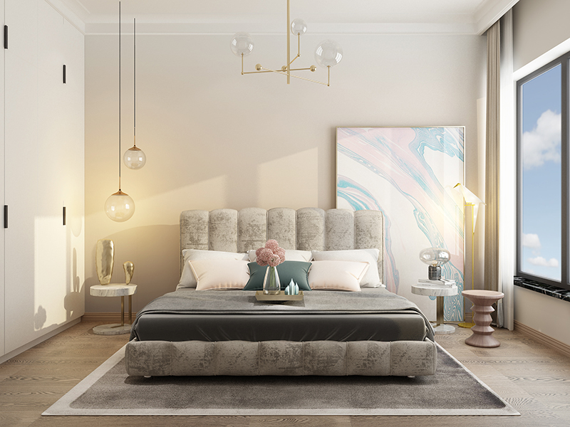 主臥采用暖色調(diào)的燈光搭配上白色干凈溫暖,也能讓你快速入眠,擺脫失眠的困擾。一大一小的玻璃罩吊燈勾起你強烈的好奇心。超大號的柜子讓衣物不在擔(dān)心落腳的地方。夜晚星辰伴你入睡,早晨陽光叫你起床。