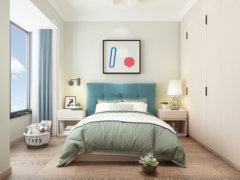 次臥,舒適的床是一天最后的歸宿,完美的色彩搭配,文藝范十足,清新自然。