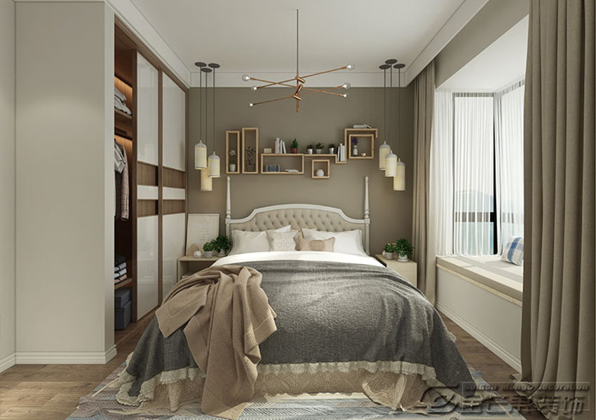 歐式特有的床頭顯得格外奢華,琳瑯滿目的吊燈裝點著空間,飄窗也能享受來自自然純凈的氣息。