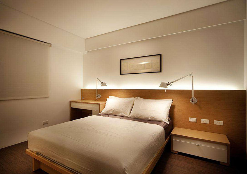 臥室電視等預留插座,離地11cm設置,床頭柜上10cm位置預留插座,方便手機和臺燈的使用。房間使用空調的在離地200cm處設置,飄窗處也應預留插座。