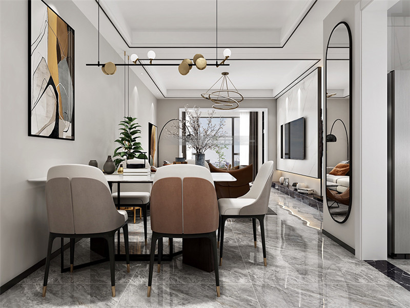 個性的燈飾營造輕奢的氛圍,用彰顯品質感的家具和優雅的顏色打造優雅、氣質的用餐環境。