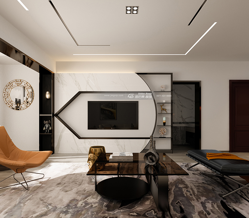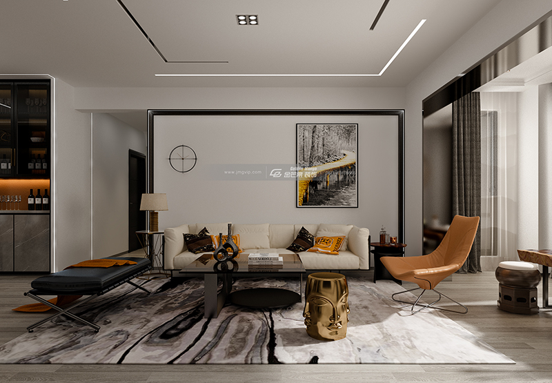 簡潔的線條,黑白灰的基調上融入當下流行的愛馬仕橙,穩重和煦又明媚動人。寧靜時尚的家居氛圍,捧一本好書,喝一杯咖啡,生活的美好在細節中得以體現。