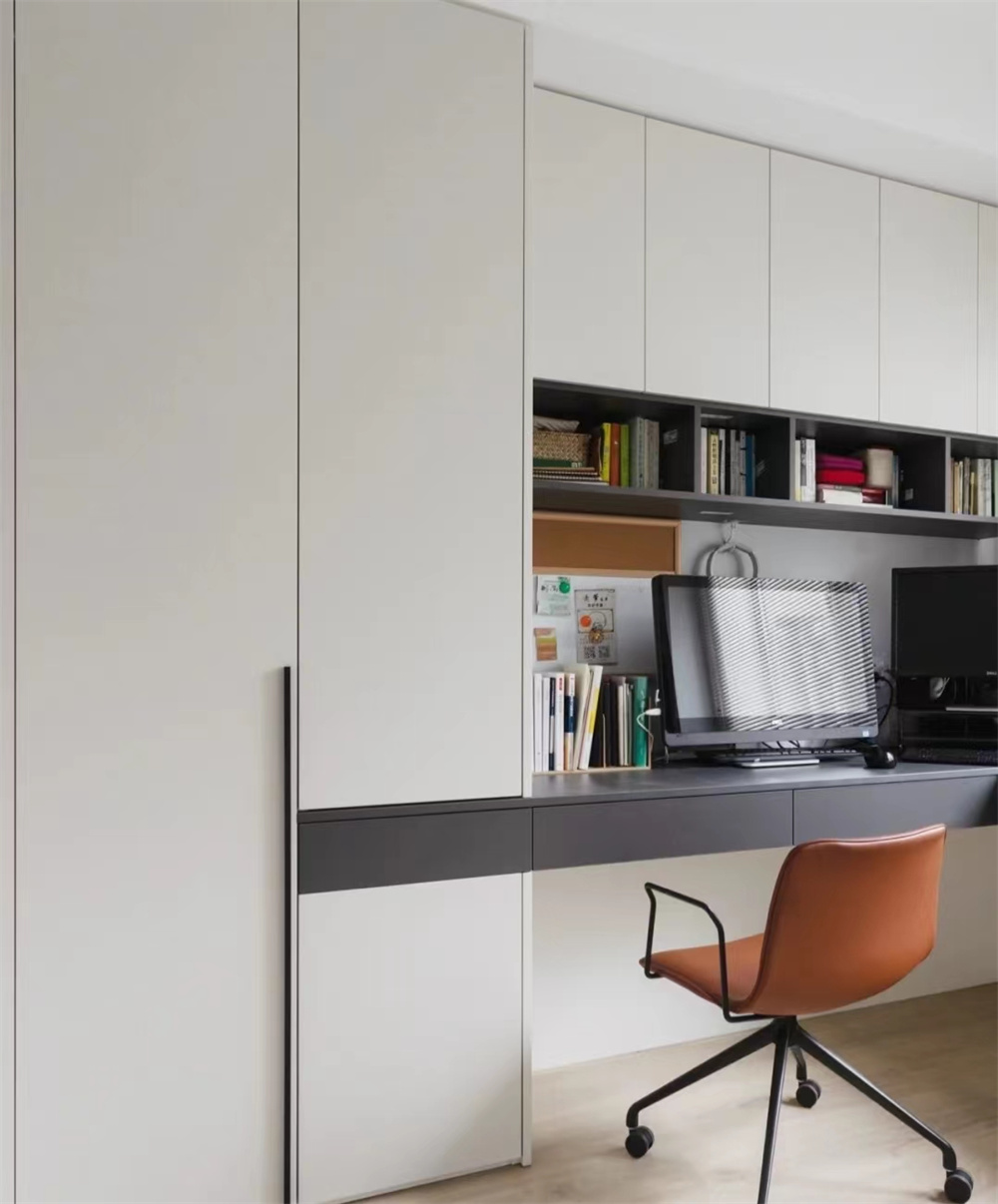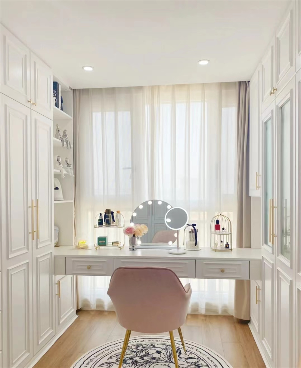 沒有多余的空間設計衣帽間,但又不想遺憾錯失,該怎么辦呢?幸福金芒果裝飾教您一個小妙招,那就是大膽嘗試不同的功能區結合,比如:書房空間、化妝空間等,可以將書房區或者化妝區置入衣帽間之內,根據使用側重點去設計安排功能占比,實現空間功能合二為一!